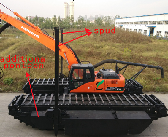 HK300SDA amphibious excavator with 15.5m digging reach boom