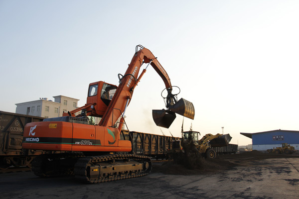 Material grabbing or transshipment in coal yards, mines, stock yards, steel mills, ports, docks and other occasions.
